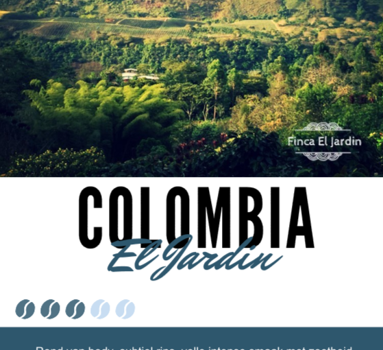 Van de heuvelen uit Colombia komt deze singlebonenkoffie. Op een hoogte van 1730 meter groeien de koffiestruiken. Door de kleine oppervlak van de plantage (tussen de 1 en 3 hectare) is deze koffie uitzonderlijk lekker.