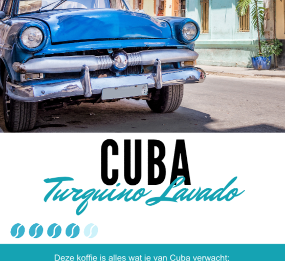 Als je aan Cuba denkt denk je al gauw aan Fidel Castro, oude auto’s, salsa, rum en sigaren. MaarCuba staat ook bekend om z’n unieke koffie. Deze koffie is alles wat je van Cuba verwacht; vol, stevig en uitgesproken met een typische smaak van sigaren.