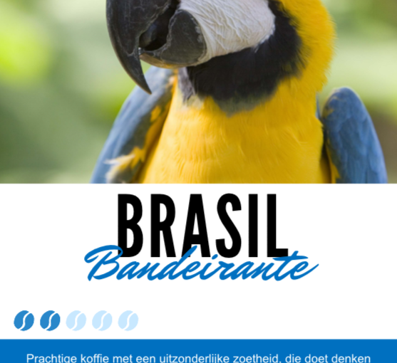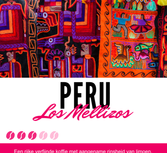 Een volle krachtige espresso met een stevige body, mooie melkchocola tonen en perfecte fruitige aroma’s. Melange van Zuid-Amerikaanse, Aziatische en Afrikaanse natural bonen.Speciale actie: Van ieder verkochte kilo koffie wordt door de brander 1 euro geschonken aan een project t.b.v. een nieuwe school in Ethiopië. Wij informeren u graag in onze winkel. De bonen uit deze melange komen uit: Colombia, Guatemala, Indonesië en Ethiopië. Deze melange bestaat voor 100% aan arabicabonen